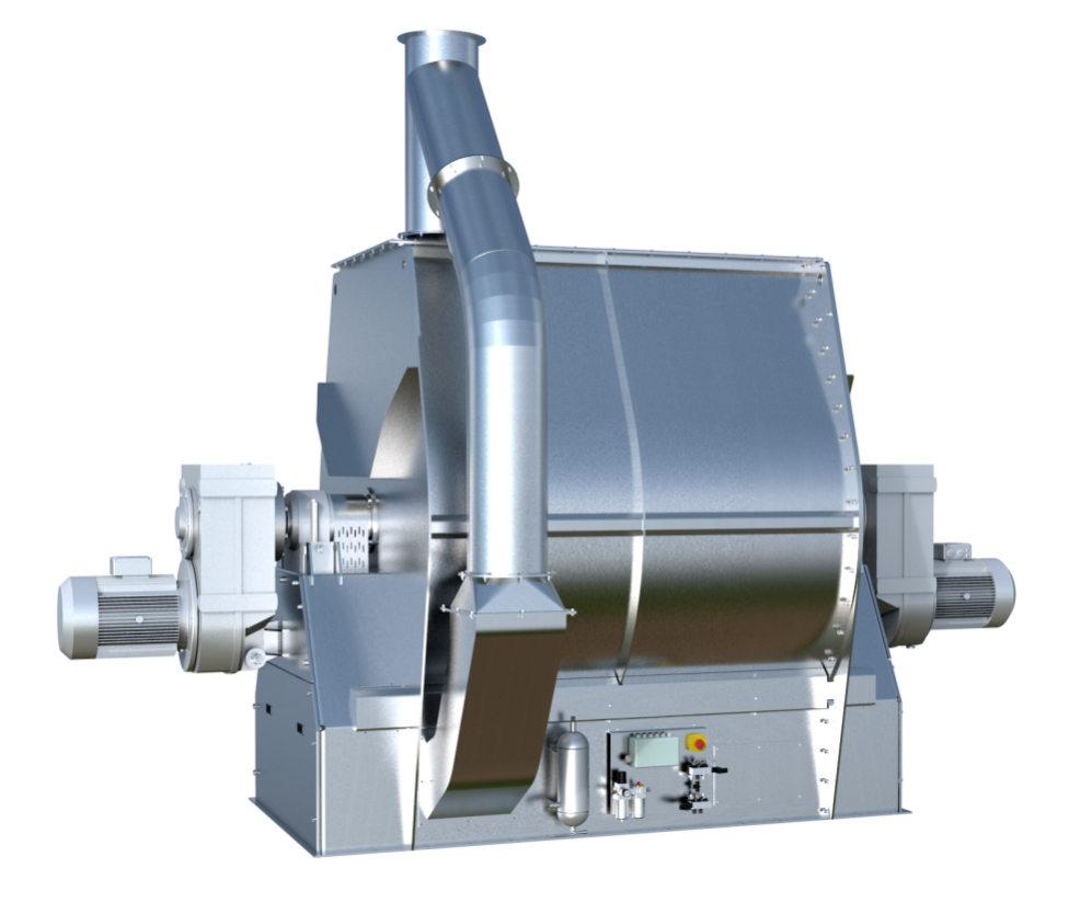采用组焊式的机体结构,并经优化设计,提高了混合机的整机刚性,且有利于改善密封性;